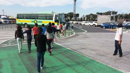 午後2時30分、関越道、三芳パーキングエリアに到着。トイレ休憩をとり2時40分に出発します。予定よりかなり早く、4時前に学校に到着しそうです。