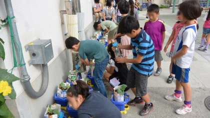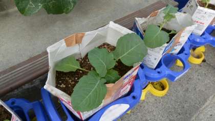 2年生は、生活科の学習で、鉢でブロッコリーを育てます。こちらも無農薬で育てるので、アオムシがつくのではないかと心配しています。虫よけに、木酢液などを使ってみようかと考えているところです。