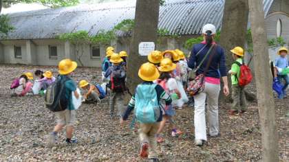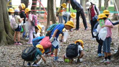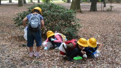 子どもたちのお目当ては、やっぱりドングリです。持ってきた容れ物に、夢中になってたくさん拾っていました。