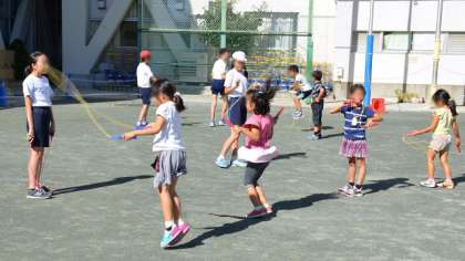 14日(火)、今日の昼休みは「なかよしタイム」です。1年生から6年生までの子どもたちで編成されている、「なかよし班」で遊ぶ時間です。校庭ではなわ跳び、体育館と屋上では長なわ跳びを学年を超えて一緒に楽しみました。