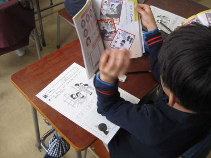 授業で取り上げるエピソードは,「くつかくし」です。かくした人,かくされた人(みっちゃん),みっちゃんのまわりの人の気持ちを考えていきます。積極的に挙手をして発言している子がたくさんいました。意見交換の後,「くつをかくした人に言ってあげたいこと」を一人ひとりが考えて,ワークシートに記入しました。「これからは,自分がされていやなことは,友達にはしないでね」「あやまってみたら?!きっとゆるしてもらえるよ」……心温まる言葉がたくさん並んでいました。