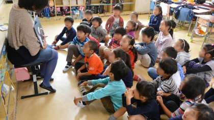 24日(金)、朝の時間に、保護者の方々が1年生の教室を訪れて読み聞かせをしてくださいました。絵本の絵を見て、保護者の方のお話を聞いて、子どもたちはすっかりお話の世界に入り込んでいます。読み聞かせが終わると、おしまいの歌でとじます。いつも子どもたちにすてきなお話、ありがとうございます。