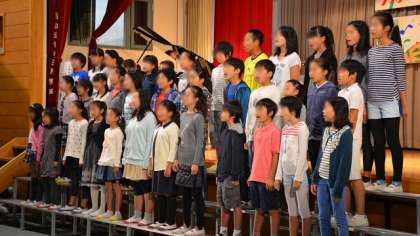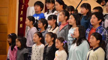 25日(土)、瀬田中学校の学芸発表会に、本校の合唱団が、学び舎交流として出演しました。瀬田中学校の合唱コンクールが始まる前、先陣を切って本校の合唱団がすてきな歌声を響かせました。中学生や保護者、来賓の方にも聞いてもらい、おほめの言葉をいただきました。堂々たる合唱。すばらしかったですよ。