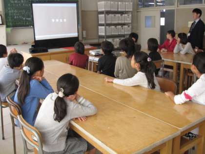 瀬田中学校の学校生活の様子をスライドでみせていただいたり,中学校の授業の様子を実際にみせていただいたりしました。来年の見学会では,中学校の授業体験や生徒会からの学校紹介などを予定しているそうです。2年後,立派に中学校へ進学できるように一日一日を大切に過ごして欲しいと思います。
