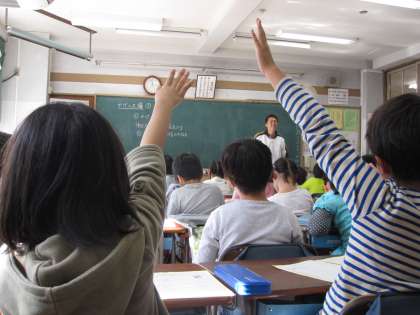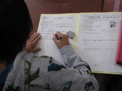 「かげと太陽」について学習しています。今日のめあては「かげ遊びをして,わかったこと,疑問に思ったことを発表しよう」です。まず,ワークシートに書いてから,クラスの友達と意見交換をします。「かげは,光の反対側にできた」「しゃがむとかげも小さくなる」「かげは自分と同じ動きをする」「少しの光でもぼやっとかげができることが分かった」「ふしぎに思ったことで,かげは,何で黒いのだろう?」など,自分の言葉でしっかり表現していました。手を挙げている様子から,友達に伝えたいという気持ちが伝わってきました。