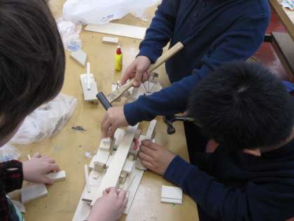 「ギコギコトントン」〜走る○○を作ろう〜 イメージを膨らませてデザインをしました。図工室は,単元名のように様々な音がしています。電動糸のこや金づちを上手に使いこなし,楽しみながら作品づくりをしていました。