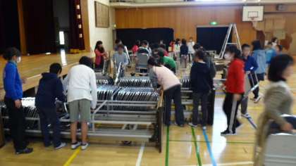 13日6校時、6年生が学芸会の前日準備作業をしました。舞台前のひな壇を一度片付け、パイプいすを並べたり、掃除をしました。みんな一生懸命作業をしていました。こんなにはたらく6年生は見たことがありません。