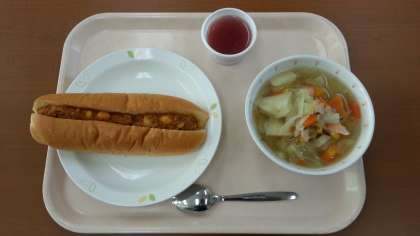 チリドッグ 牛乳 野菜スープ ぶどうゼリー