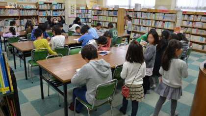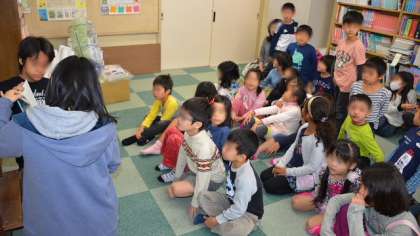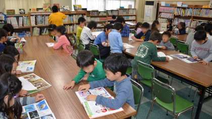 休み時間、図書室で図書委員会児童による読み聞かせを行いました。雨のため外遊びができなかったこともあり、会場の図書準備室は子どもたちでいっぱいになりました。図書室も、本を読む子がたくさん訪れて大盛況です。灯火親しむ秋。たくさん読書をしましょう。