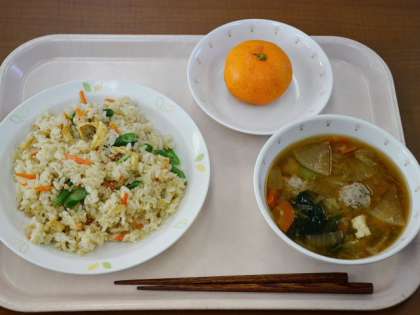 こぎつねごはん 牛乳 ムロアジのつみれ汁 みかん