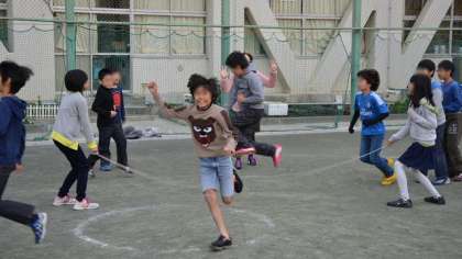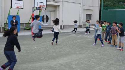 さあ5分間に挑戦です。写真は5年生です。やる気満々の5年生。練習の成果があってずいぶん跳び方がうまくなりました。6年生への挑戦です。