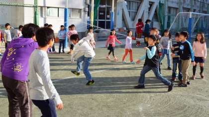さて、5分間の結果は?・・・2年生の一クラスが200回跳んだのを最高に、2年生は100回代、1年生はまだ慣れていないので、およそその半分です。最初の頃は跳べる子が少ないくらいでしたが、今ではほとんどの子が跳べるようになりました。3学期にもまた、やります。楽しみです。がんばりましょう。