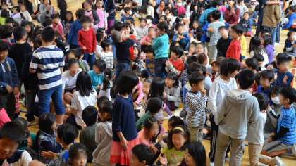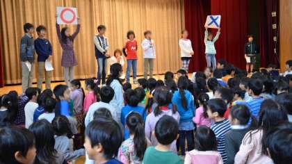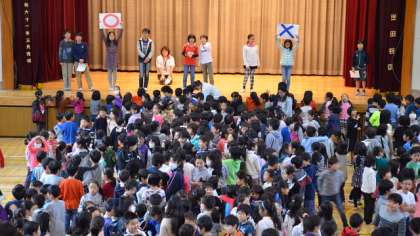 11日(木)朝、集会委員会企画の児童集会を体育館で行いました。今日は◯✕クイズです。集会委員会の子どもたちが考えたクイズ。今日はなかなか手強い問題がそろっていて、◯か×かを決めるのは、とても難しいようでした。それでもみんな一生懸命考えて、全問正解の子がたくさんいました。いつも、みんなが楽しめる集会を企画し、裏方役でがんばってくれている集会委員会の子どもたちです。