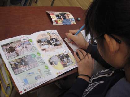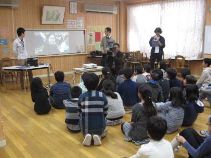 昨日に引き続き,日本放送協会の放送技術局の方にご協力いただき,授業をしました。写真は,カメラマンの方に一人ひとりの顔を撮影してもらっているところです。子どもたちは,少し照れていました。教室では,体験してわかったことをまとめ,リーフレット資料をもとに,さらに詳しく調べていました。全員の子どもたちが,テレビカメラマンを体験したときの写真をいただき,大喜びでした。