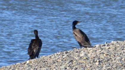 多摩川での探鳥会、毎回見られる定番の鳥、「カワウ」「アオサギ」も、もちろんいました。