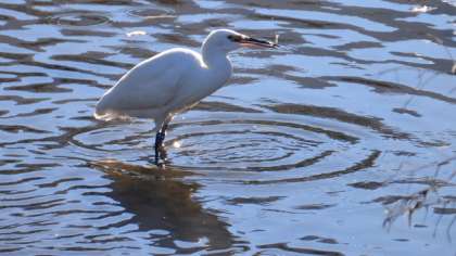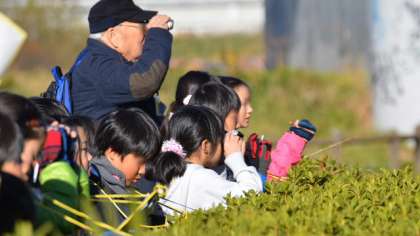 今日は本当にたくさんの鳥を見ることができました。そして講師のみなさんが見やすいところに案内して、ていねいに説明してくださったので、おかげさまで子どもたちの鳥に対する関心がずいぶん高まりました。(写真は「コサギ」が魚をとらえた瞬間。下の写真はすごいスピードで飛び回っていたハトくらいの大きさの鳥で、名前がわかりません)