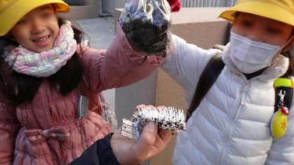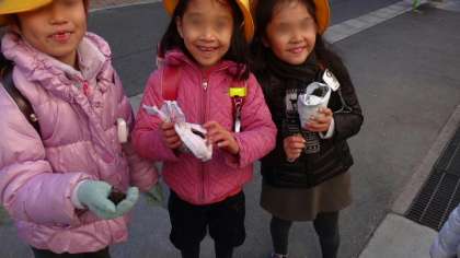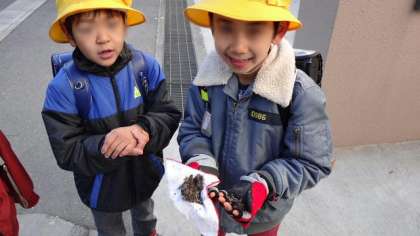 今朝は東門で子どもたちをむかえていたのですが、手になにか大事そうにかかえてくる子がいました。その中身は?霜柱です。「先生や友達に見せるんだ」と言っていました。