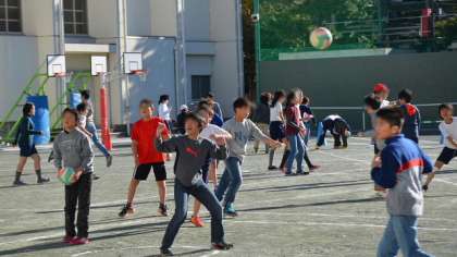 午前中ぬかるんでいた校庭は、昼休みまでにほとんど乾いて使えるようになりました。20分休みに我慢したかいがありました。暖かい日差しを浴びながら、元気に遊ぶ子どもたちです。