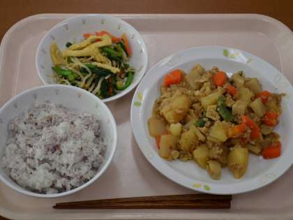 ゆかりごはん 牛乳 じゃがいものそぼろに カリカリ油あげのおひたし