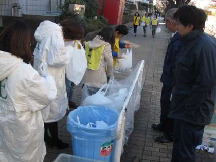 グループごとに4つの方面別に別れて活動しました。一見すると,見当たらないゴミですが,子どもたちは真剣です。隅々まで見て,落ちているゴミを見逃さずに一生懸命拾いました。ゴミの集積所では,係の方から分別について教えていただきながら,拾ってきたゴミを分けました。学校へ帰ってからの振り返りでは,「また,ゴミがあったら拾いたい」「ゴミを捨てない人になりたい」…などの意見が出されました。