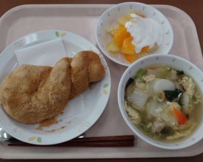 きな粉あげパン 牛乳 卵雑煮 フルーツヨーグルト