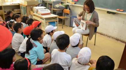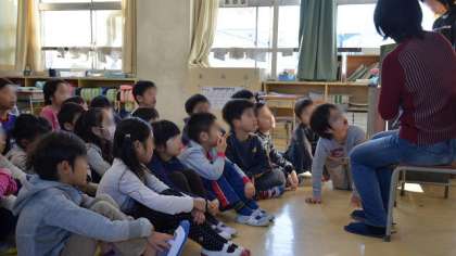 16日(金)朝、3学年で保護者の方が読み聞かせをしてくださいました。写真は2年生です。読み書かせは、ただ読むだけではなく、子どもたちに問いかけたり、いろいろ工夫しておこなっています。近くで食い入るように絵本を見つめ、問いかけにも元気に応えるようすが見られました。
