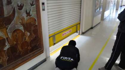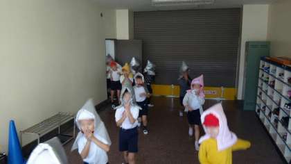 16日(金)、11時20分から火災発生の想定で避難訓練を行いました。いつもより実践的な訓練ということで、火災の際はしまる防火シャッターや防火とびらを、事前に主事がしめておいて、警報とともに避難を行いました。予告なしなので、校庭で体育をしていた1年生は校庭の中央に集まり不安そうな表情でした。いつもであれば簡単に通れる出入り口には、一人ずつがやっとの出入り口しかありません。そこを順番を待って落ち着いて通り、避難できるようにするための訓練です。