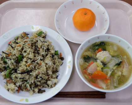 ひじきごはん 牛乳 鶏団子汁 ぽんかん