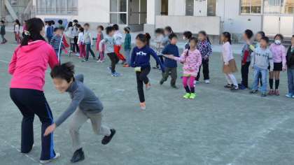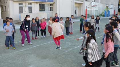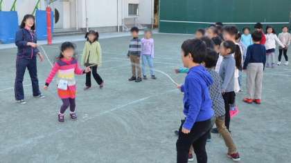 1年生も最初の頃に比べるとずいぶん上手に跳べるようになってきました。間を空けずに連続で跳べる子もいます。