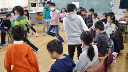 各班で、高学年がみんなを楽しませるゲームを考え、みんなが楽しめるように気を遣っているようすが見られました。