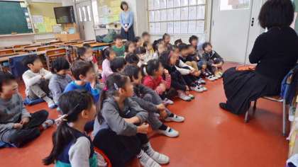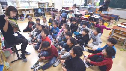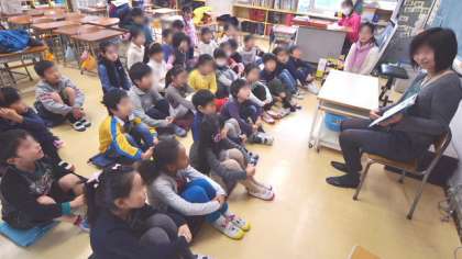 23日(金)、学校公開最終日の朝、1・2年の教室に保護者の方が訪れて読み聞かせをしてくださいました。読み手と絵本を食い入るように見つめる子どもたちです。