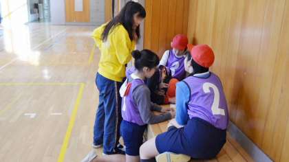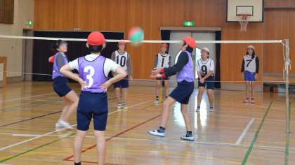27日、6年生の体育のようすです。ソフトバレーボールの学習です。ルールの確認をした後、用具の準備や準備体操を各チームでやり、作戦もたてました。体育授業の流れが身についていて、自分たちでテキパキと進めることができていました。試合は、まだ最初に時間だったこともあり、思うようにはプレーできませんでしたが、試合後に学習カードに記入しチームで話し合い、課題やこれからの目標を明らかにして次の時間に結びつけます。
