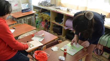 みんなが遊んでいる最中も、5年生が6年生に送るメッセージカードを作成していました。5年生、えらいですね。