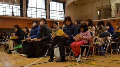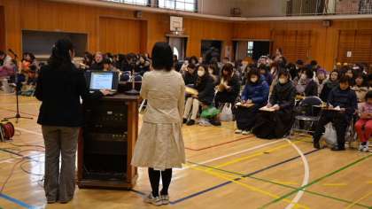 5日(木)午後2時、体育館で新1年生保護者説明会を実施しました。気温が低く雪が降る中、来年度入学する児童の保護者、家族の方々が、体育館に続々と集まってきました。学校から、入学に向けて生活や持ち物などについてスライドを見ていただきながら説明をしましたが、大型ストーブを設置して暖めてはいるものの、広い体育館ですから室温は10度前後までしか上がりませんでした。集まっていただいたみなさんには寒い思いをさせてしまい申し訳ありませんでした。それでも最後まで熱心に耳を傾けていただきありがとうございました。4月6日が入学式です。わからないことがあれば、学校にお気軽にお問い合わせください。校長:千葉