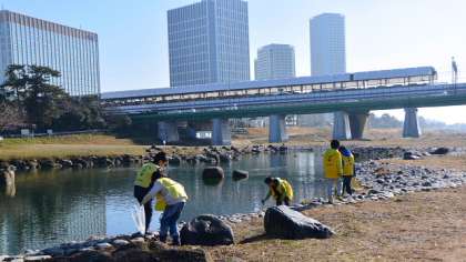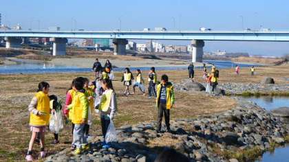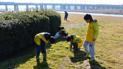 多摩川の兵庫島方面に出かけたグループのようすです。雨上がりの広い河原を、ゴミを探して歩き回り、学校からもっていったトングを使って、一生懸命ゴミ拾いをしました。あまりないかと思いましたが、結構たくさん拾いました。こうやって拾うことによって、ゴミを捨てない、放置しないという習慣を身につけます。今日も寒い中、保護者の方も参加してくださいました。ありがとうございました。