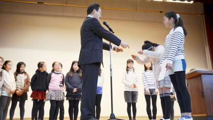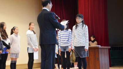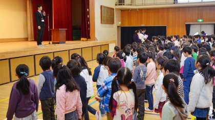 二子トワラーズは、1月31日(土)横浜文化体育館で行われた「第28回関東バトントワーリングチームコンテスト」に出場し、3・4年生の「入門ジュニア」、5・6年生の「初級ジュニア」両方で見事「金賞」をとりました。また、個人でも何人もが認定を受け、大変うれしい結果となりました。最後は看護当番から今週の目標について話しました。寒い体育館で上着を脱いで集合し、最後までしっかり集中できた子どもたちです。