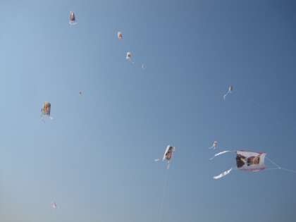 生活科の時間,図工の時間に作った凧を兵庫島まで上げに行きました。凧を上げるには,最適な風が吹いていました。高く高く舞い上がる凧を見て,子どもたちは大喜びでした。