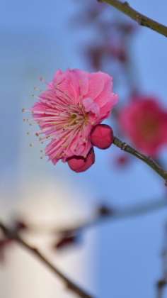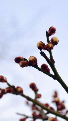 校舎東側、ウサギの飼育小屋の奥の方の昨年植えたばかりの梅の木に、花が咲き始めました。紅梅と白梅が植えてあるのですが、まず紅梅が濃いピンク色の花を咲かせています。白梅ももう少しですね。楽しみです。