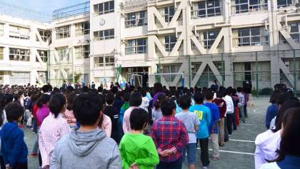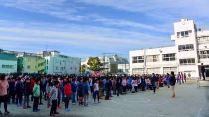 青空にまるで秋のような「高層雲」や「高積雲」が広がった16日(月)、気温もこの時期としては比較的高く、日差しもあったので、朝会を校庭で行いました。校長講話では、最初に「ちょっと空を見上げてごらん」と言って、頭上に広がる空のようすに関心をもたせ、季節の微妙な変化を感じる機会にしようと思いました。続いてちょっと注意をしました。登下校時、道に広がって歩き、行する人に迷惑をかけているというお話が学校に届いたためです。近隣の方々は子どもたちのことを気遣ってくださり、前から歩いてくる子どもの集団を自分からよけてくださる方がほとんどです。しかし、それに甘えて我が物顔で歩くのは、二子玉川小学校の児童としてどんなものか?よく考えてほしいと呼びかけました。話をしている間、子どもたちが真剣に聞いていたことが、私としてはうれしく思いました。