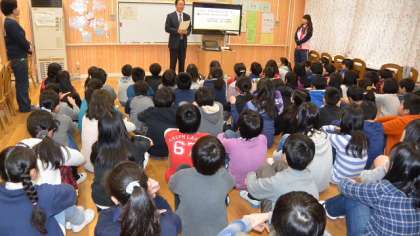今、子どもたちには、将来、社会的・職業的に自立し、社会の中で自分の役割を果たしながら、自分らしい生き方を実現するための力が求められています。この視点に立って日々の教育活動を展開するということがキャリア教育です。通常は特別に「キャリア教育の時間」を特設して授業をしているわけではありません。教科や道徳、学級活動に位置づけて、学年の発達段階などに合わせて行っています。将来への夢や希望、見通しをもって中学生活に向かおうということで、現在、6年生が卒業を前にして、キャリア教育に取り組んでいます。18日(水)5校時は、6年生全員がランチルームに集まり、学校長の話を聞きました。少年期はパイロットをめざしていて、その道に入りかけたものの、ある理由から自ら進路を変えて今に至っていることを、人生にはさまざまな転機がありますが、これからの人生で、少しでも参考になればと思いながら話しました。熱心に話を聞いてくれた子どもたちでした。うれしいですね。
