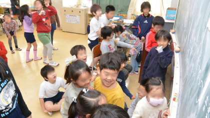 24日(火)昼休み時間は「なかよしタイム」で子どもたちが楽しみました。なかよしタイムは、1から6年生までの児童が「なかよし班」を編成して、月に1度、ゲームや遊びを楽しむ活動です。年度末になると互いの顔や名前も覚えて、和気あいあいの雰囲気です。