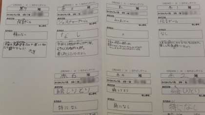 なかよしタイムのリーダーは高学年がつとめますが、今は6年から5年生への引き継ぎを意識して、5年生が企画や運営を担当してがんばっています。担当の教員と相談して、写真のような計画書を事前につくってあります。何事もかげの努力があってこそですね。