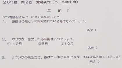 本校の特色ある活動である「愛鳥活動」。その活動の成果を試す「愛鳥検定」を、25日朝に5・6年生が受けました。問題は10問。結構難しい内容です。わかりますか?