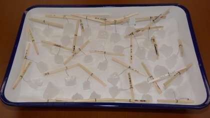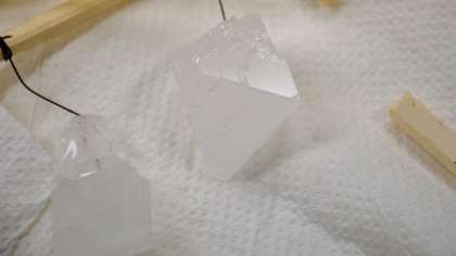 昨日お伝えした、5年生の校長理科特別授業の実験で、子どもたちが実験に真剣に取り組んだ成果の結晶です。こんなにりっぱなミョウバン結晶ができました。大きな物で4センチメートルほどあります