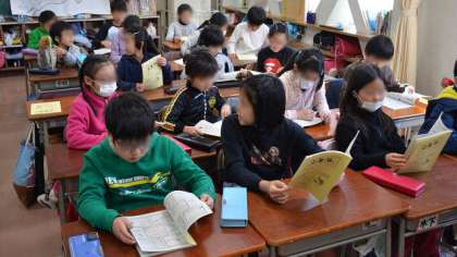 愛鳥モデル校として毎年取り組み、その成果を綴った「ことり文集」ができあがり、5日朝は、読み合わせの時間として設定しました。各クラスで自分のだけでなく、友達の文や絵を見て盛り上がっていました。