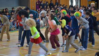 来年度から二子玉川小学校の最高学年となる5年生は、ダンスを披露しました。みんなで何をするか話し合って決めました。最初に女子が、後半は思い思いに仮装した男子が力一杯元気なかっこいいダンスで、会場を大いに盛り上げてくれました。