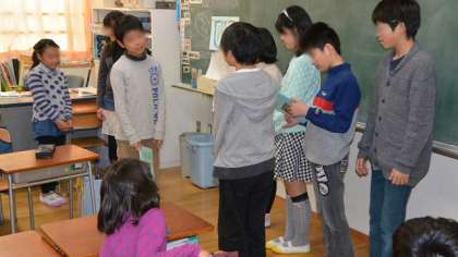この日は、最後の活動でしたので、5年生が中心となって作った寄せ書きを、各班でお世話になった6年生に手渡しました。