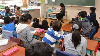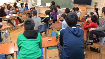 6日(金)、今朝は5年生と3年生の教室で読み聞かせがありました。写真は5年生のようすです。高学年でも、子どもたちは読み聞かせに興味をもって、楽しそうに聞いています。
