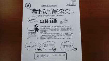 10日(火)午前、ランチルームで「Cafe talk」と称して、二学期に行われた東大名誉教授の汐見先生をお招きして行ったPTA研修会の続編が行われました。講演が講評だったため、PTA研修・教育委員会の有志による主催ということで行われました。