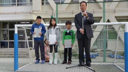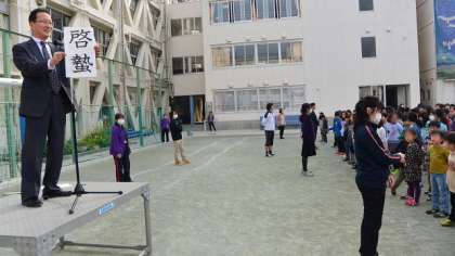 16日(月)朝会は、久しぶりに校庭で行いました。校長講話では、「啓蟄」を例として、季節を表す「二十四節気」について話しました。表彰は健康努力児童と、愛鳥検定満点合格者です。どちらにも大きな拍手がおくられました。
